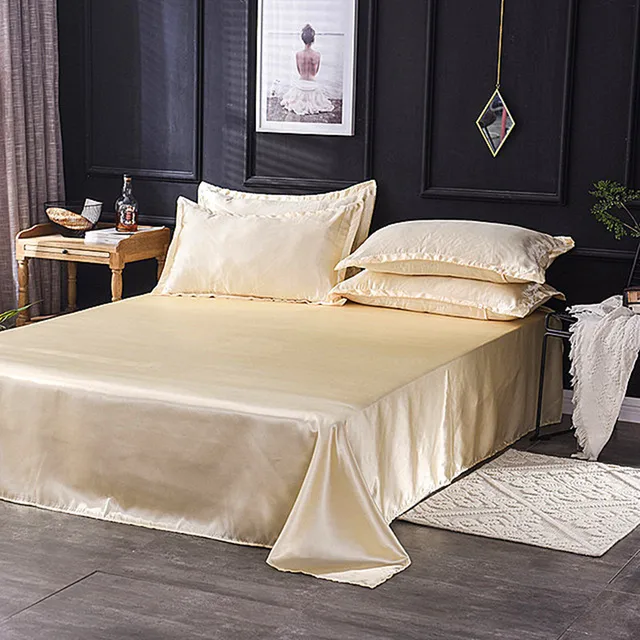 BUY Hot Sale Wholesale Luxury 100% Satin Silk White 1PCS Flat Sheet Silky Queen King Bed Sheets For Wom 4000317019028