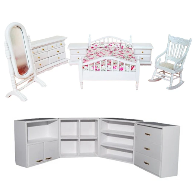 Best Offer 2 Set Dollhouse Furniture Set:1 Set 1/12 Living Room Wooden Shelf Combination Cupboard White & 1 Se with FREE Worldwide Shipping!